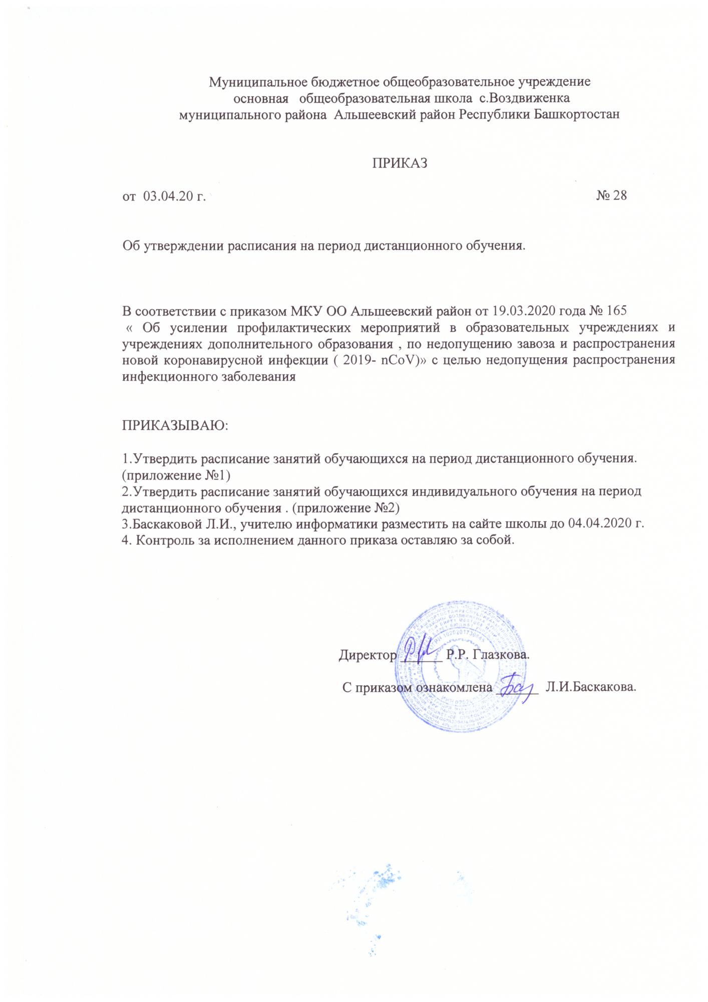 МБОУ ООШ с.Воздвиженка информирует, что с 06 апреля в школах МР Альшеевского района образовательный процесс будет организован в дистанционном формате: через электронное обучение и использование дистанционных образовательных технологий.