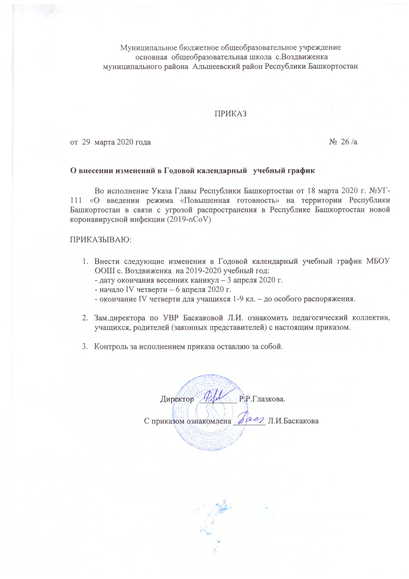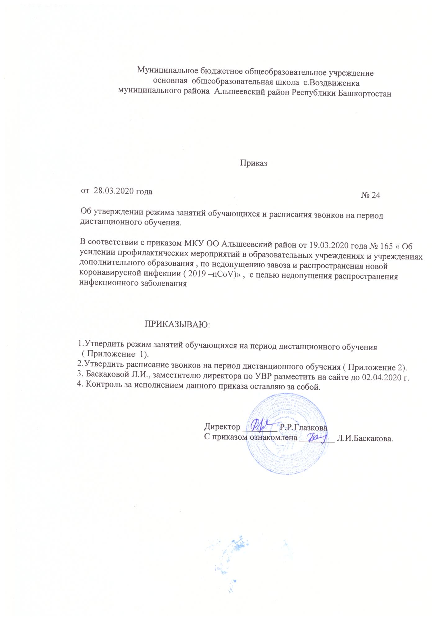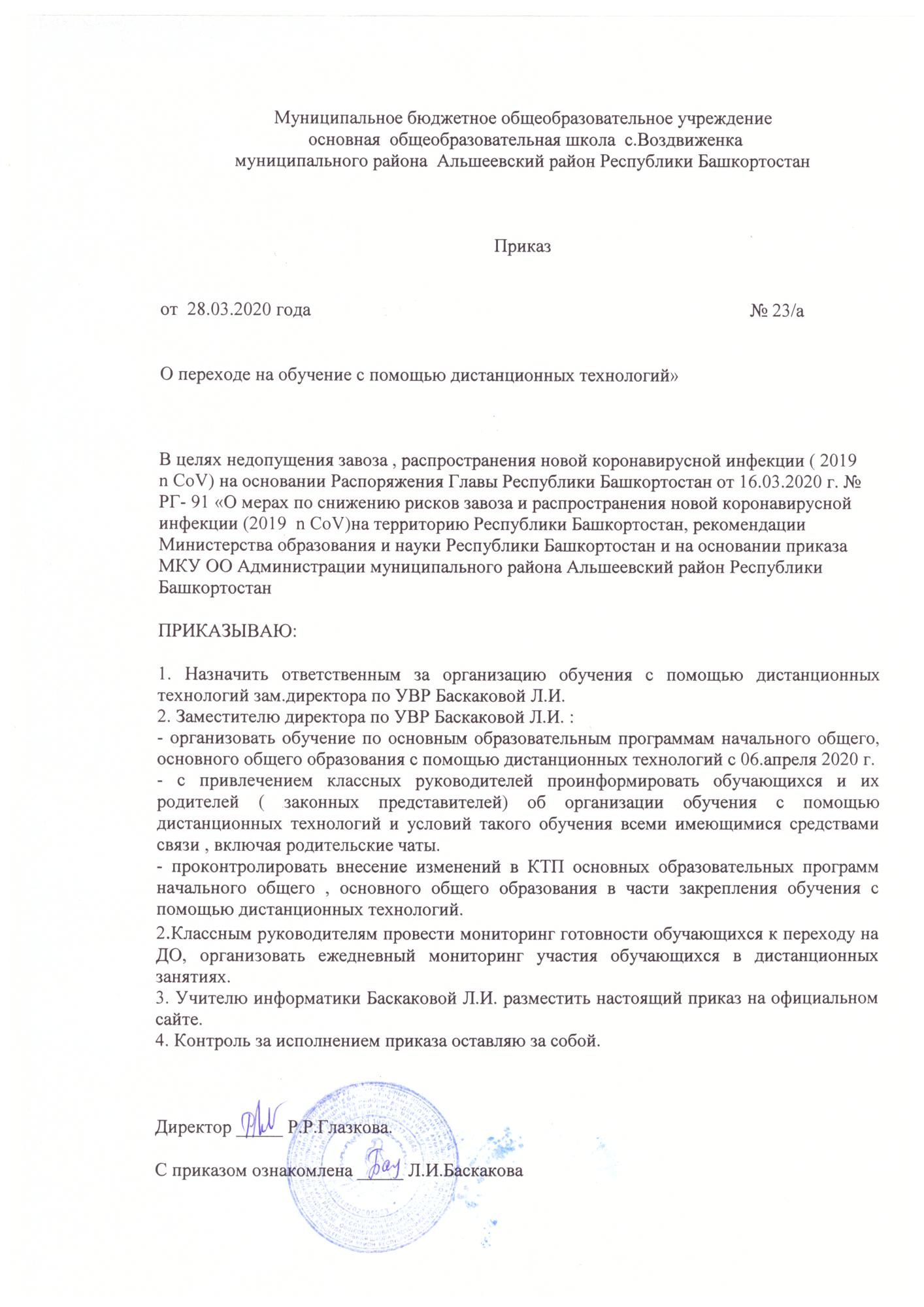 МБОУ ООШ с.Воздвиженка информирует, что с 06 апреля в школах МР Альшеевского района образовательный процесс будет организован в дистанционном формате: через электронное обучение и использование дистанционных образовательных технологий.