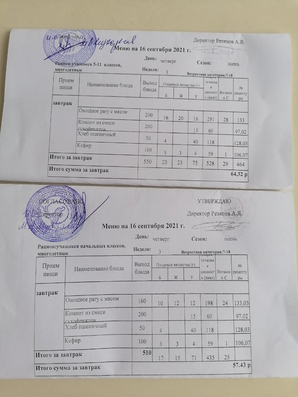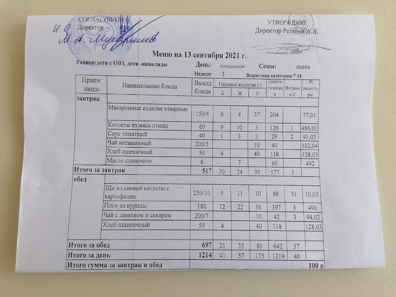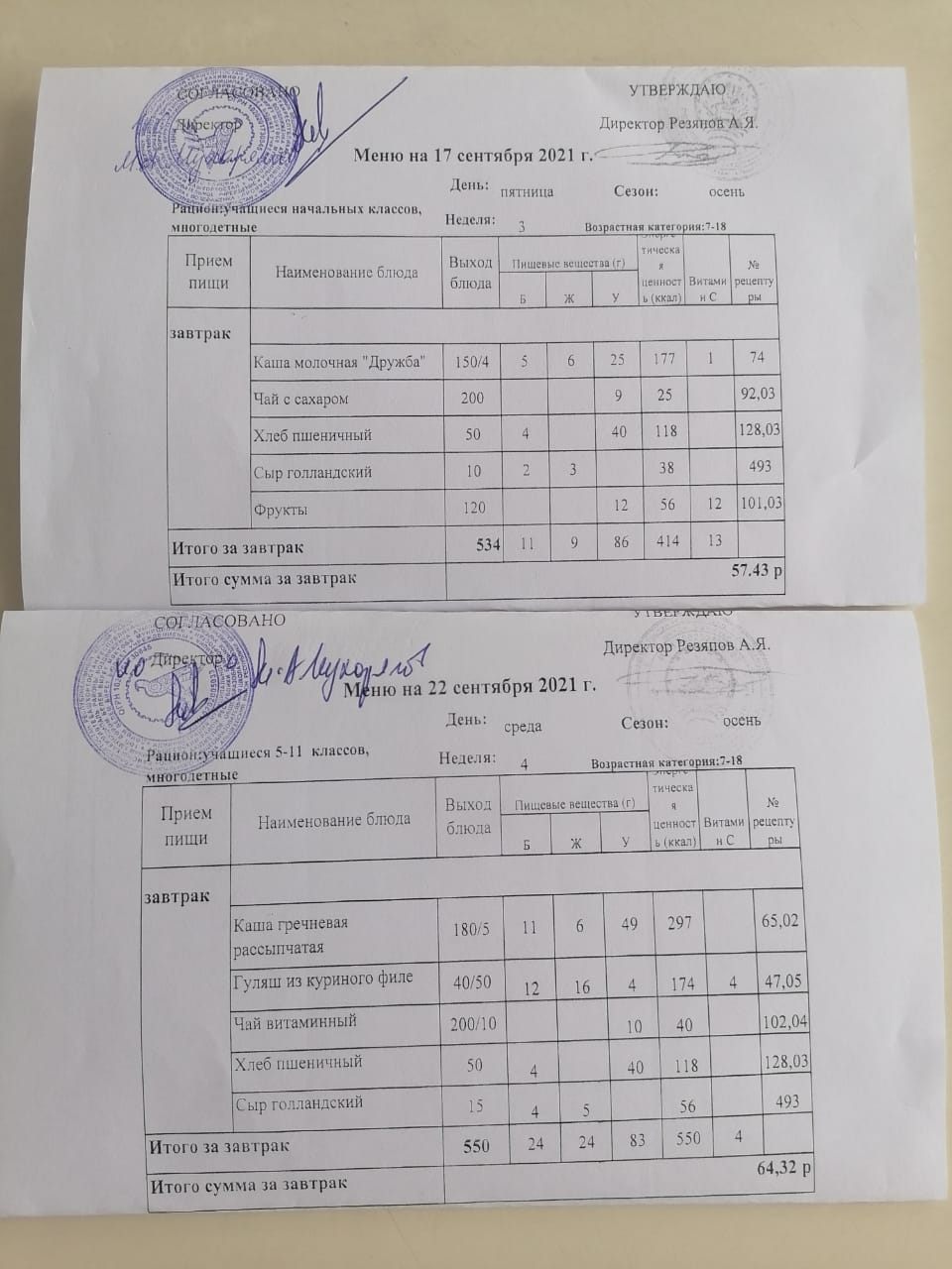 (завтрак)