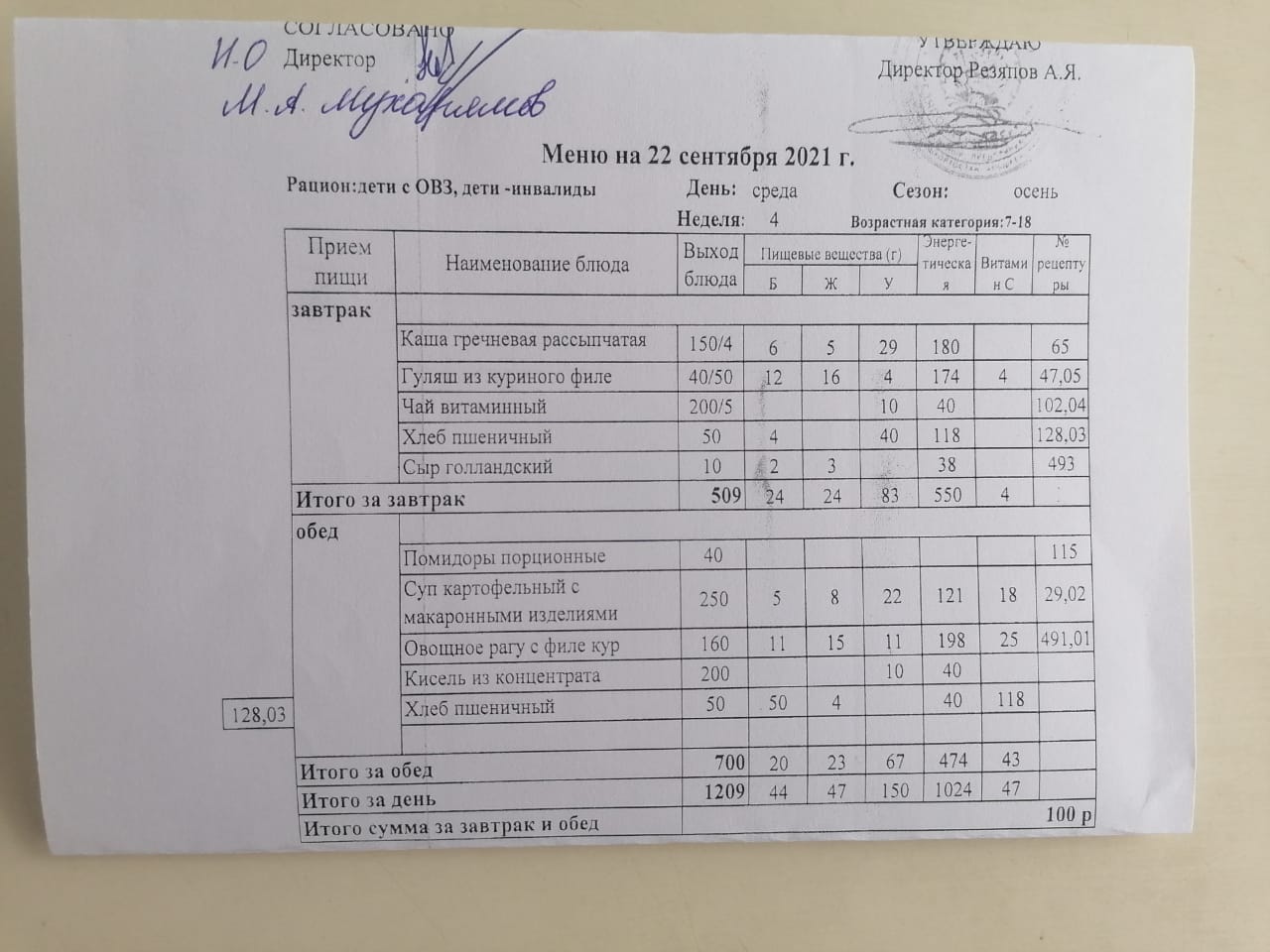 Контрольное блюдо