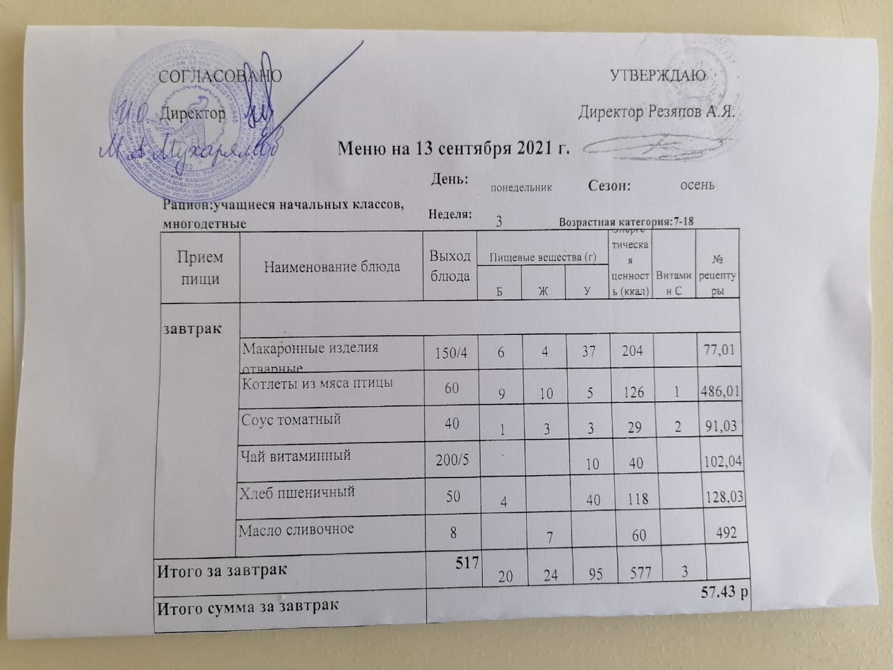 (Меню ММС, 1-4 класс на 10.09.2021)